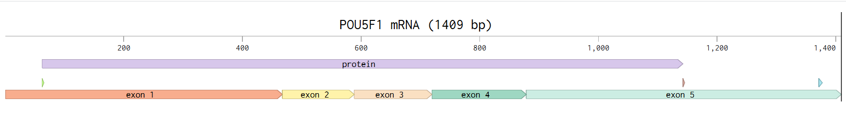 I went to NCBI genbank and retrieved POU5F1 mARN transcript variant, 1409bp long