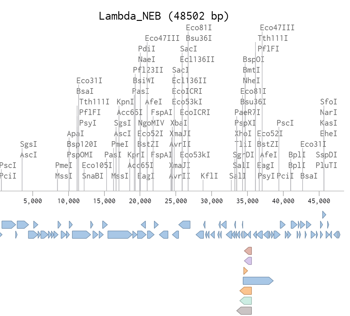 Part 1: Benchling & In-silico Gel Art Objective - For this assignment, I have imported lambda DNA as a .gb file into Benchling and performed in-silico restriction digests with the seven enzymes. I recorded the fragment sizes and generated simulated gels, then designed a multi-lane gel that forms an image.