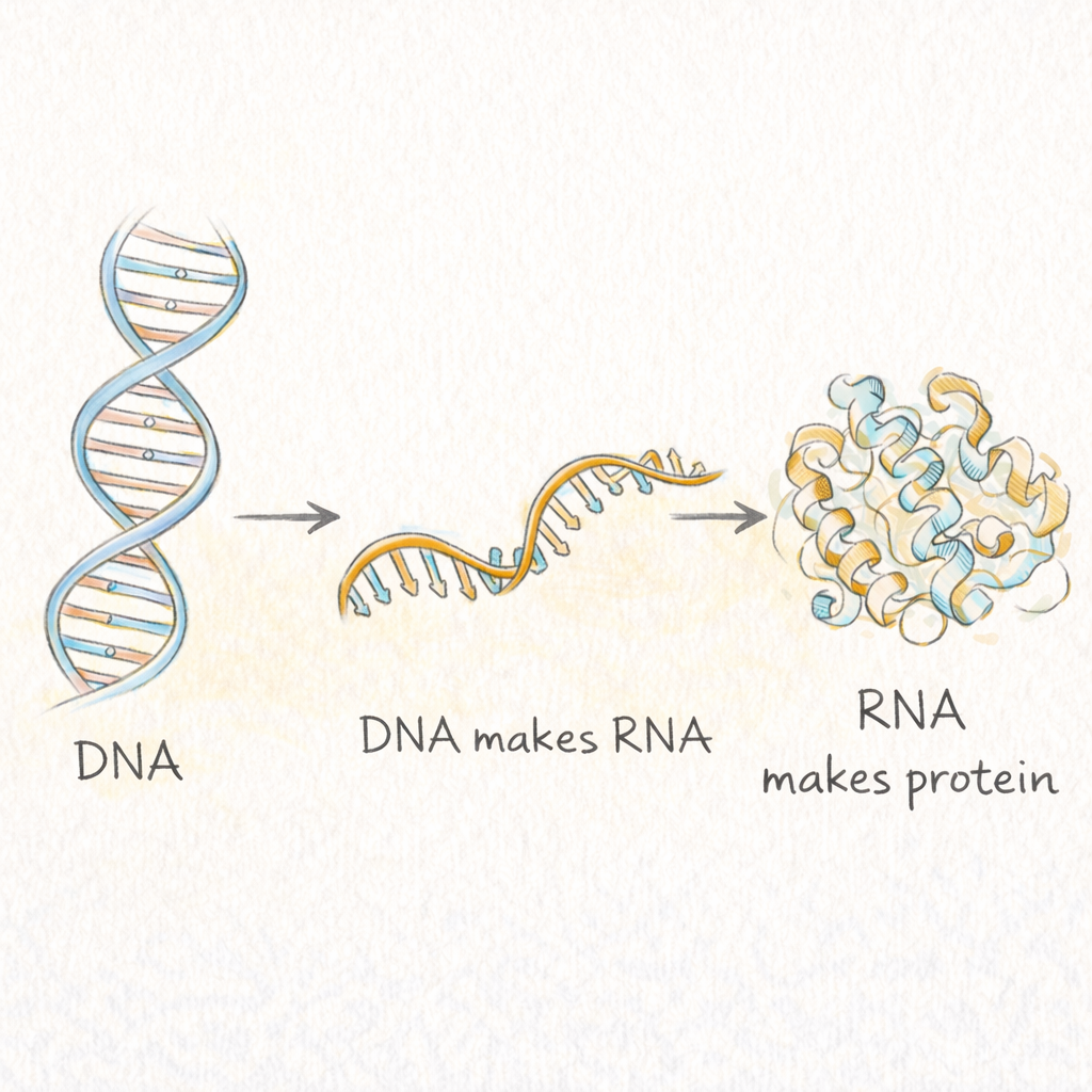 Now that I have my optimized DNA sequence, the next step is to think about how this DNA could actually be used to produce the protein. In general, the process is the same in any biological system: the DNA is transcribed into mRNA, and then the mRNA is translated by ribosomes into the protein.