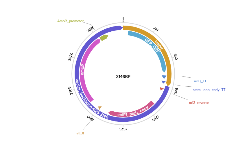 Complete sequence (promoter, RBS, Start codon, coding sequence, 7xHis Tag, end codon, terminator)