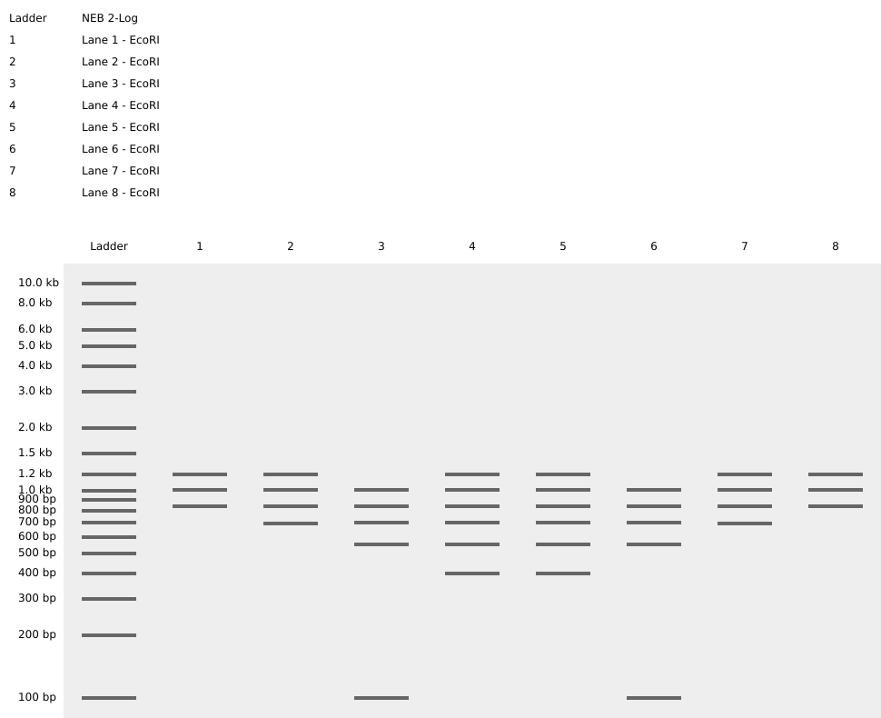 A restriction enzyme digestion was simulated in Benchling with the following enzymes: