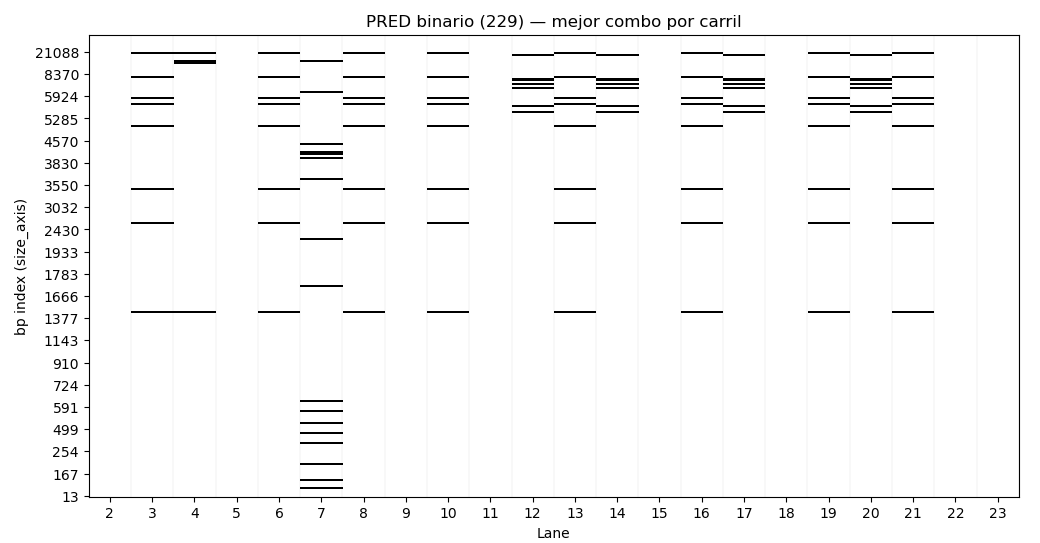 A binary matrix (combination × fragment sizes) was constructed, indicating presence/absence of each fragment.
