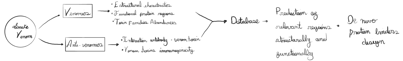 The following proposal aims to create a system that involves venomics and antivenomics estudies of Bothrops venoms to create a database that can be used to identify key regions with high impact in their toxic activities. Through these regions I propose the design of proteins using artificial intelligence. These candidates could be useful to explore the possibility of designing synthetic antivenoms that don’t depend on the use of animals for their production (Figure 1)