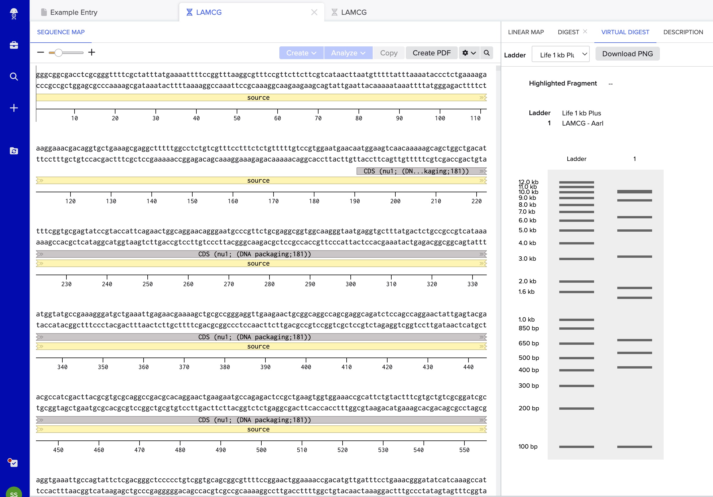 To run a virtual digest, the DNA sequence has to be uploaded in a standard format, usually either FASTA or GenBank.