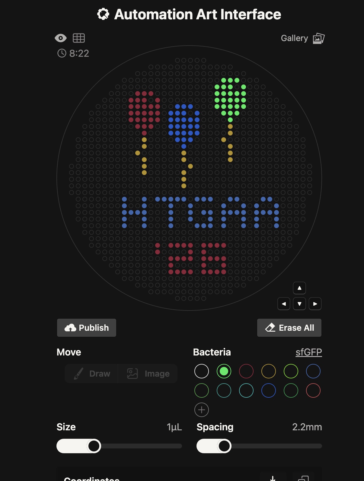 One of the coolest parts of this lab was using Opentrons Art, a tool built by TA Ronan that turns lab automation into a creative platform. Instead of writing everything from scratch in Python, this interface dramatically simplifies the workflow for creating agar-based designs. You can literally paint directly onto a virtual plate or upload an image, and the tool converts it into a protocol-ready layout for the robot.