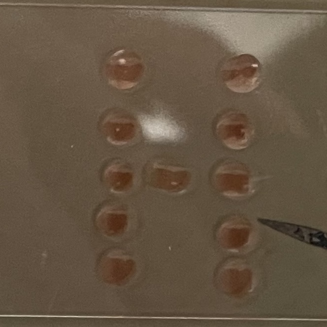 Week 1 Lab: PipettingI used P20 (1-20uL) pipettes to create a letter “H” pattern with red food coloring solution contained in an Eppendorf tube.