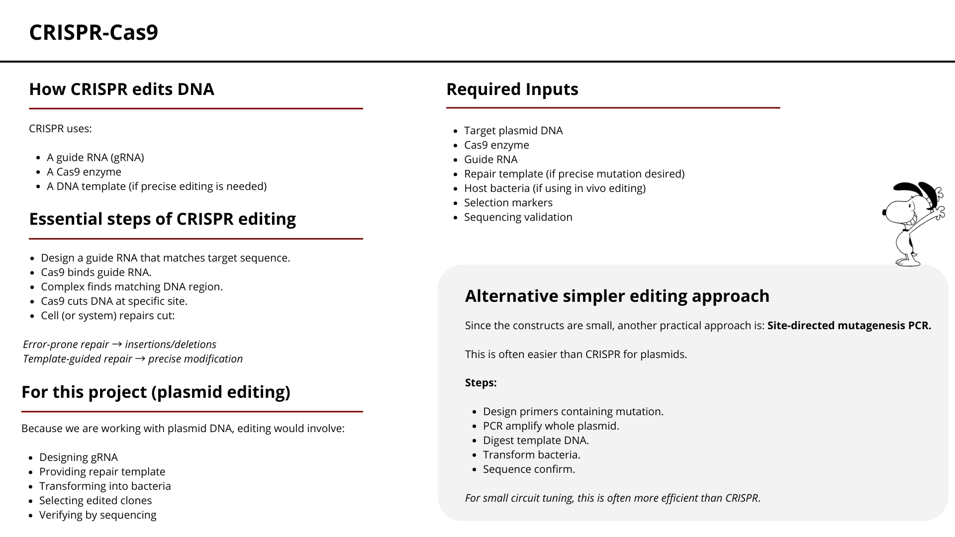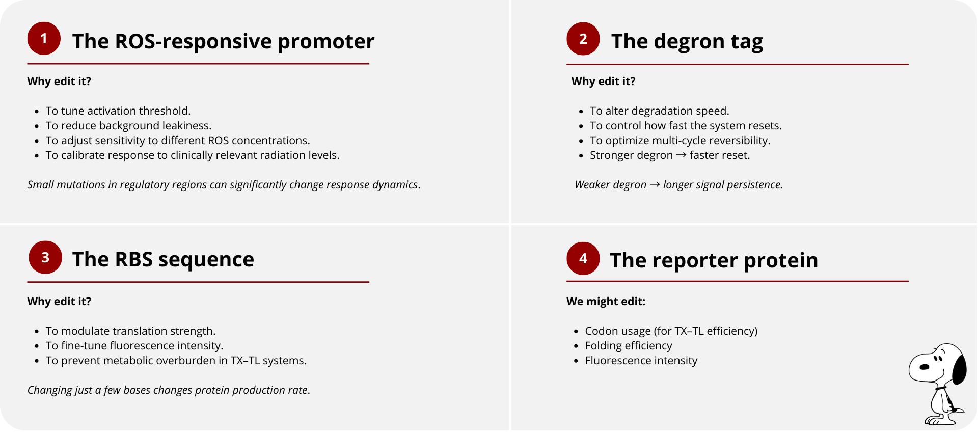 This platform is thinked to be modular, allowing future expansion to additional damage types. Rather than engineering a new organism, the project focuses on engineering biological function, emphasizing control, modularity, and reusability.