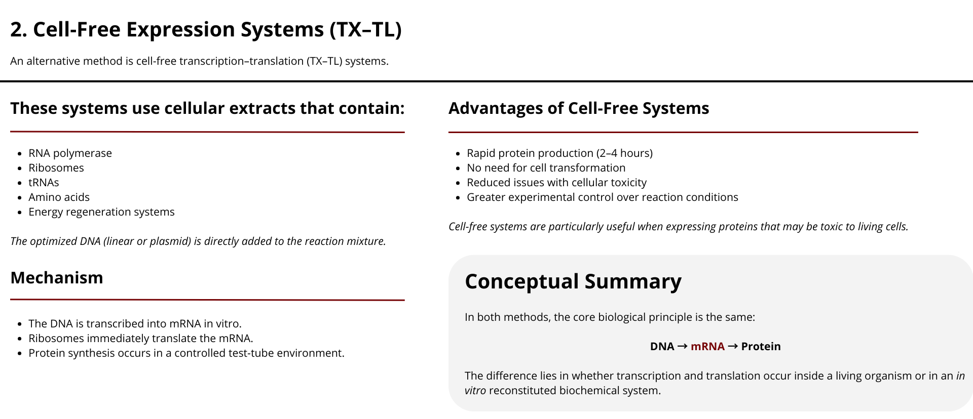 Example 2: You are using the cloud laboratory to screen an array of biosensor constructs that you design, synthesize, and express using cell-free protein synthesis.