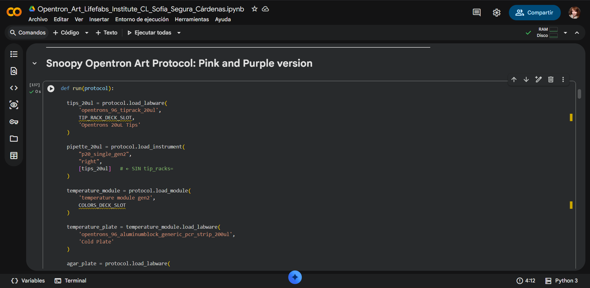 Did I use AI? For sure! I used AI to help write and optimize my code. I primarily used ChatGPT, which was extremely helpful in reviewing my code, explaining tricky parts, and suggesting optimizations. I also tried Google Colab’s Gemini, but I found its responses less useful and not satisfactory for my needs, even when providing it with access to the code. ChatGPT really guided me step by step, helping me understand how to structure the Opentrons protocol correctly and troubleshoot potential issues, which made the process much smoother and more reliable.