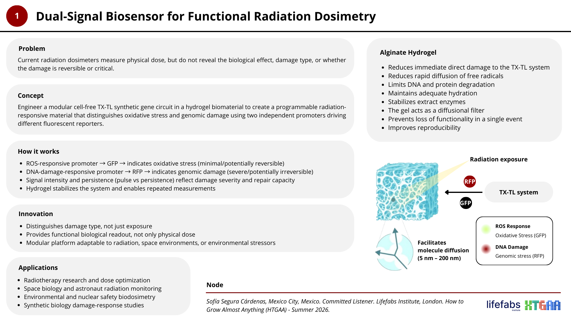 The goal of this project is to engineer a reversible, reusable, cell-free biosensor that translates radiation-induced oxidative damage into a transient biochemical signal.
