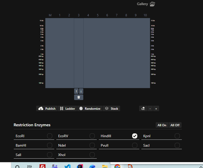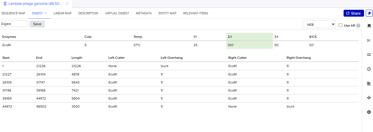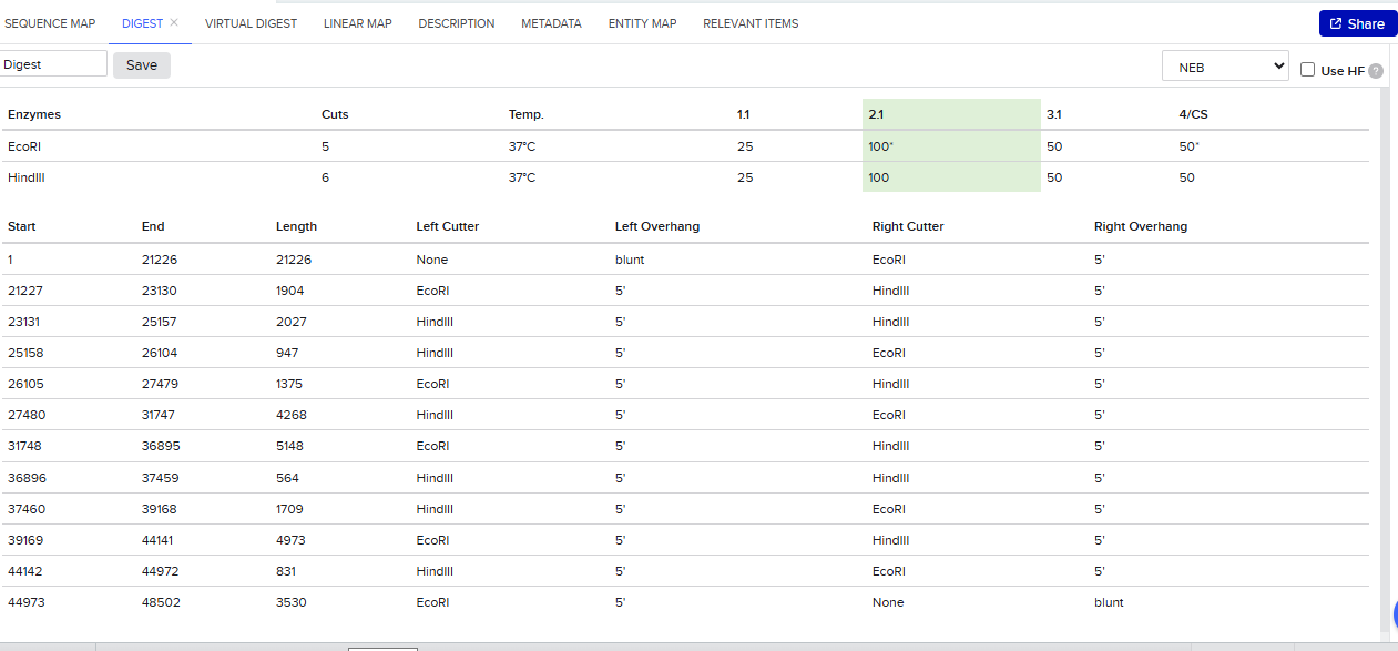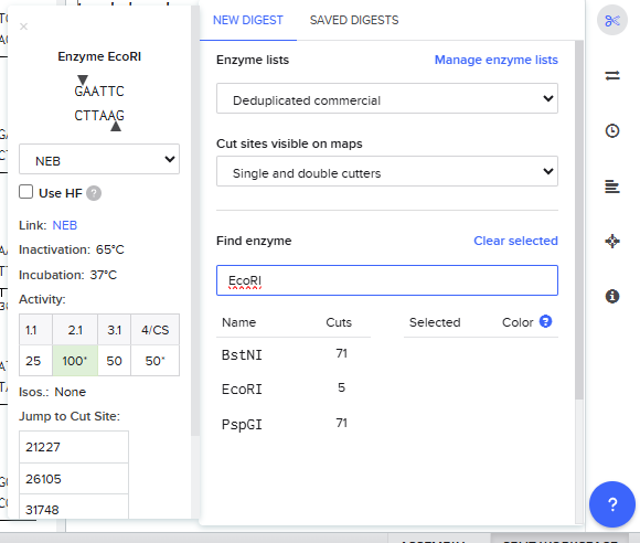 - Simulate Restriction Enzyme Digestion with the following Enzymes