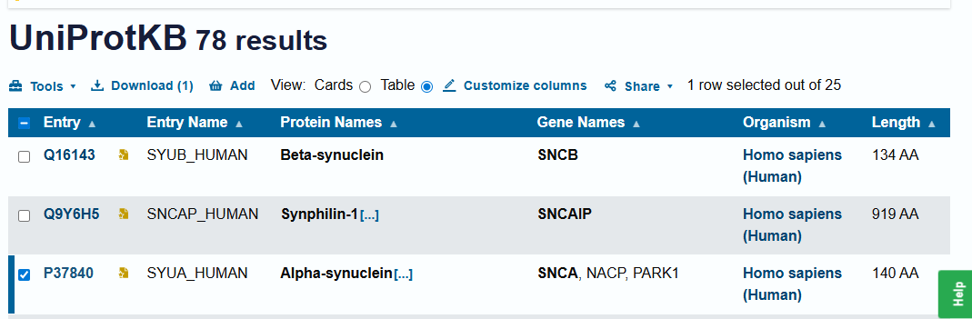 - UniProt. (n.d.). Alpha-synuclein (SNCA) – Homo sapiens. (link)