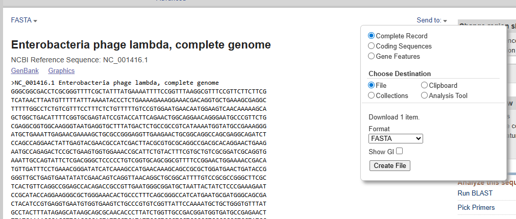 - Import Lambda DNA from NCBI
