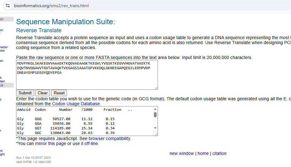- Bioinformatics.org. (n.d.). Sequence Manipulation Suite – Reverse Translate. (link)